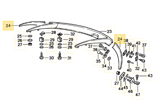 A Left Rear Spoiler for 928s from years 1980-1986.#24 on the PET Drawing